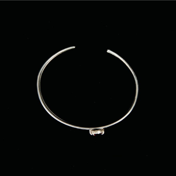 Een spel van lijnen en licht, geboren uit de poëzie van het alledaagse. De Double Coffee Cuff uit de Mundane collectie is met de hand vervaardigd uit 925 zilver en bestaat uit twee parallelle banden van elk 2 mm dik, lengte te kiezen. Tussen de lijnen van zilver schittert een ovale cabochonsteen van 5 × 7 mm — verkrijgbaar in onyx, citrien, rozenkwarts of granaat.