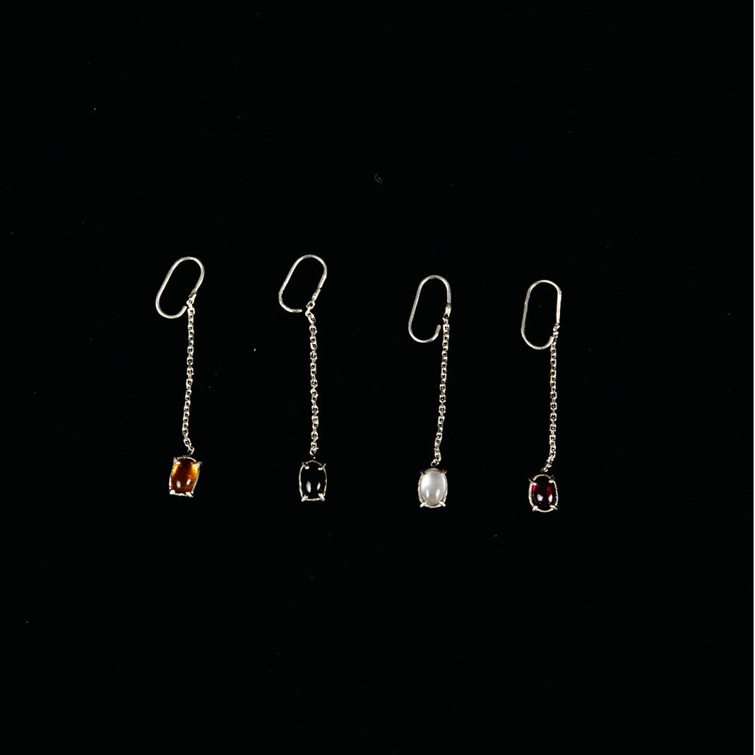 Een vertaling van dat ene losse draadje aan die warme trui dat zacht meebeweegt met elke stap — een detail dat tegelijk toevallig en zorgvuldig lijkt. De Loose Thread Earrings uit de Mundane collectie zijn met de hand vervaardigd uit 925 zilver en bestaan uit fijne, beweeglijke schakels die licht vangen bij elke beweging. Onderaan bungelt een ovale cabochonsteen van 5 × 7 mm — onyx, citrien, rozenkwarts of granaat — als een klein, glanzend eindpunt van de draad.