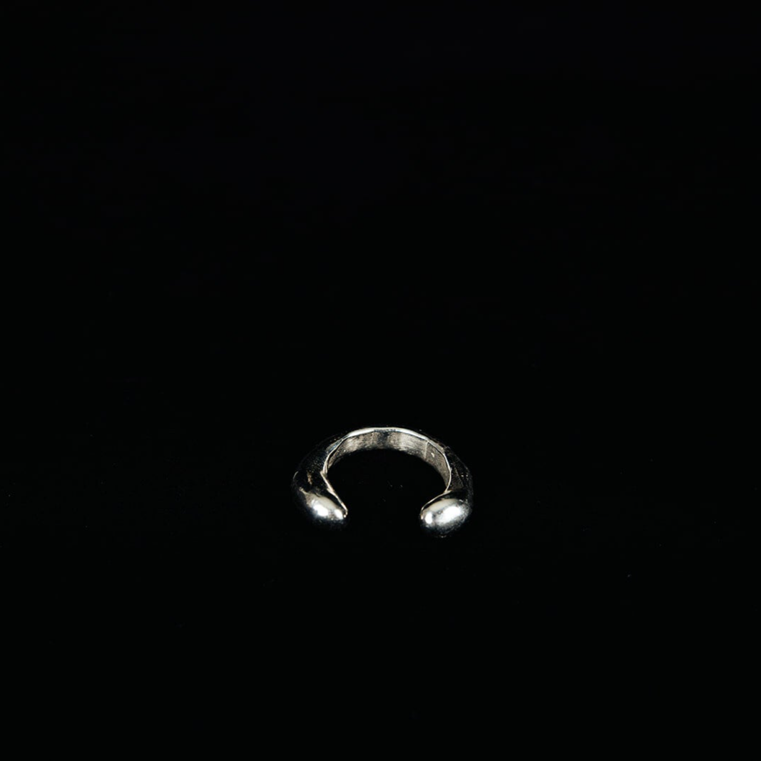 Een moment van vloeibare beweging dat is opengebroken — alsof de honing even stilviel en toen uiteenstroomde. De Drippy Honey Ring Split uit de Mundane collectie is met de hand vervaardigd uit 925 zilver en kenmerkt zich door zijn gespleten vorm: twee glanzende lijnen die rond de vinger bewegen en elkaar bijna raken.